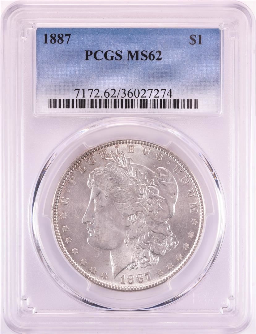One 1887 $1 Morgan Silver Dollar Coin PCGS MS62. PCGS Graded.