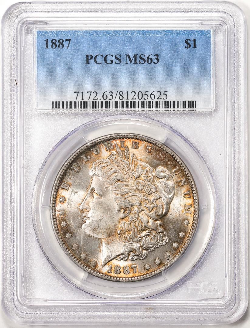 One 1887 $1 Morgan Silver Dollar Coin PCGS MS63 Nice Toning. PCGS Graded.