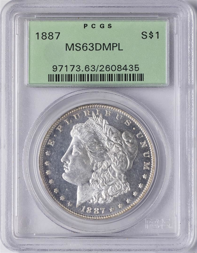 One 1887 $1 Morgan Silver Dollar Coin PCGS MS63DMPL. PCGS Graded.