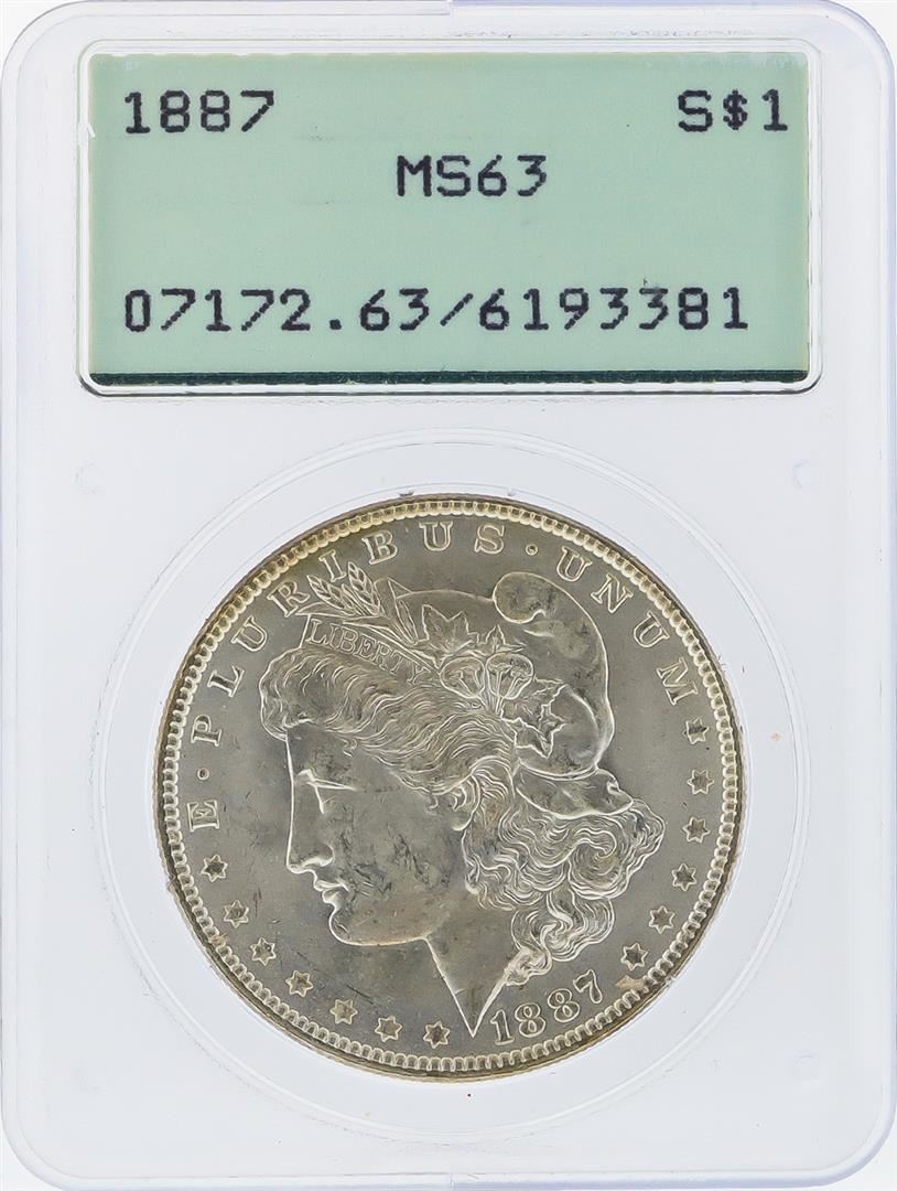 One 1887 $1 Morgan Silver Dollar Coin PCGS MS63. PCGS Graded.