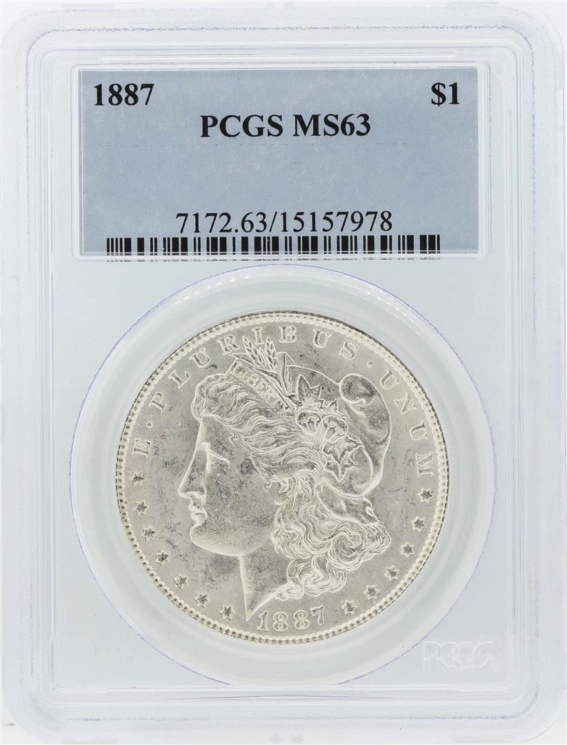 One 1887 $1 Morgan Silver Dollar Coin PCGS MS63. PCGS Graded.