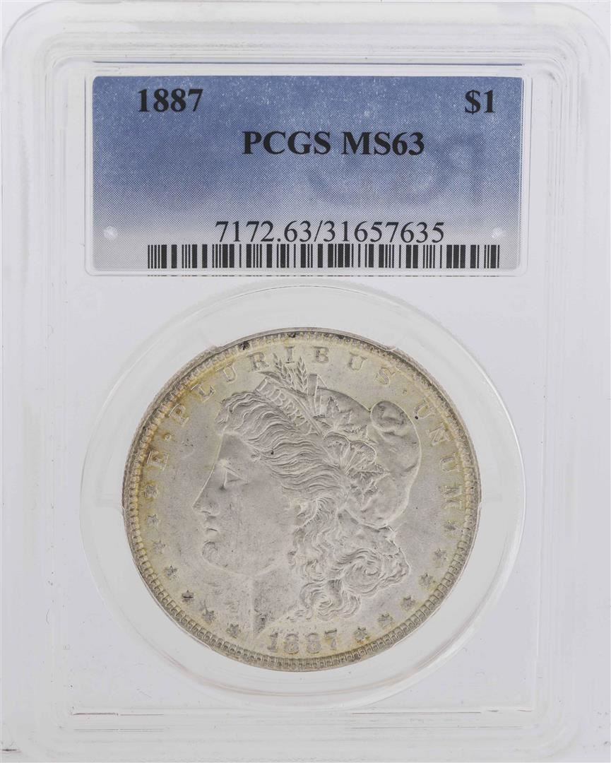 One 1887 $1 Morgan Silver Dollar Coin PCGS MS63. PCGS Graded.