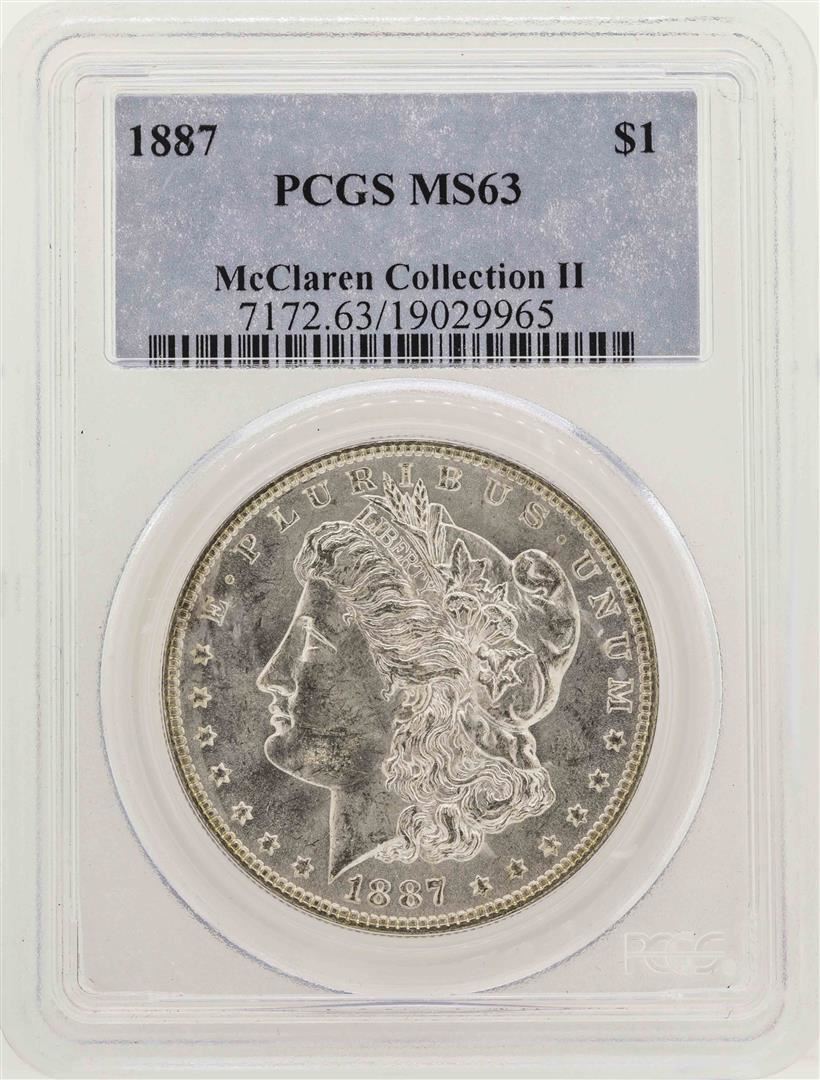 One 1887 $1 Morgan Silver Dollar Coin PCGS MS63. PCGS Graded.