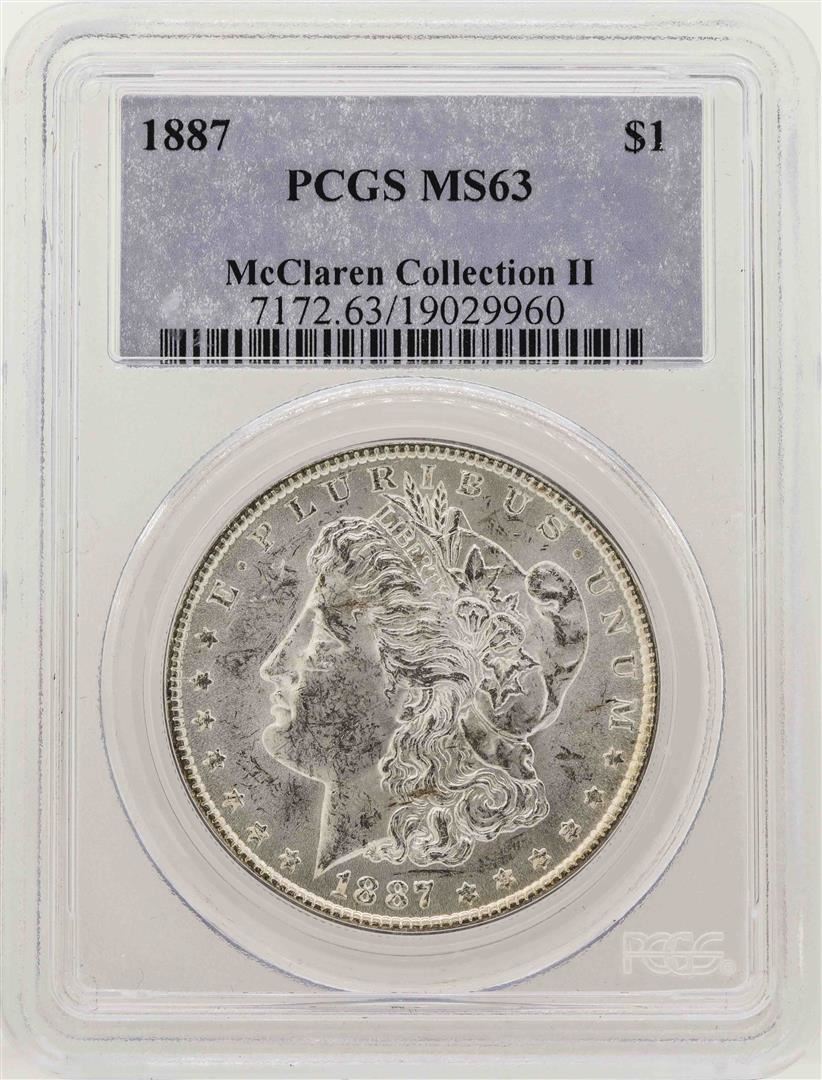 One 1887 $1 Morgan Silver Dollar Coin PCGS MS63. PCGS Graded.
