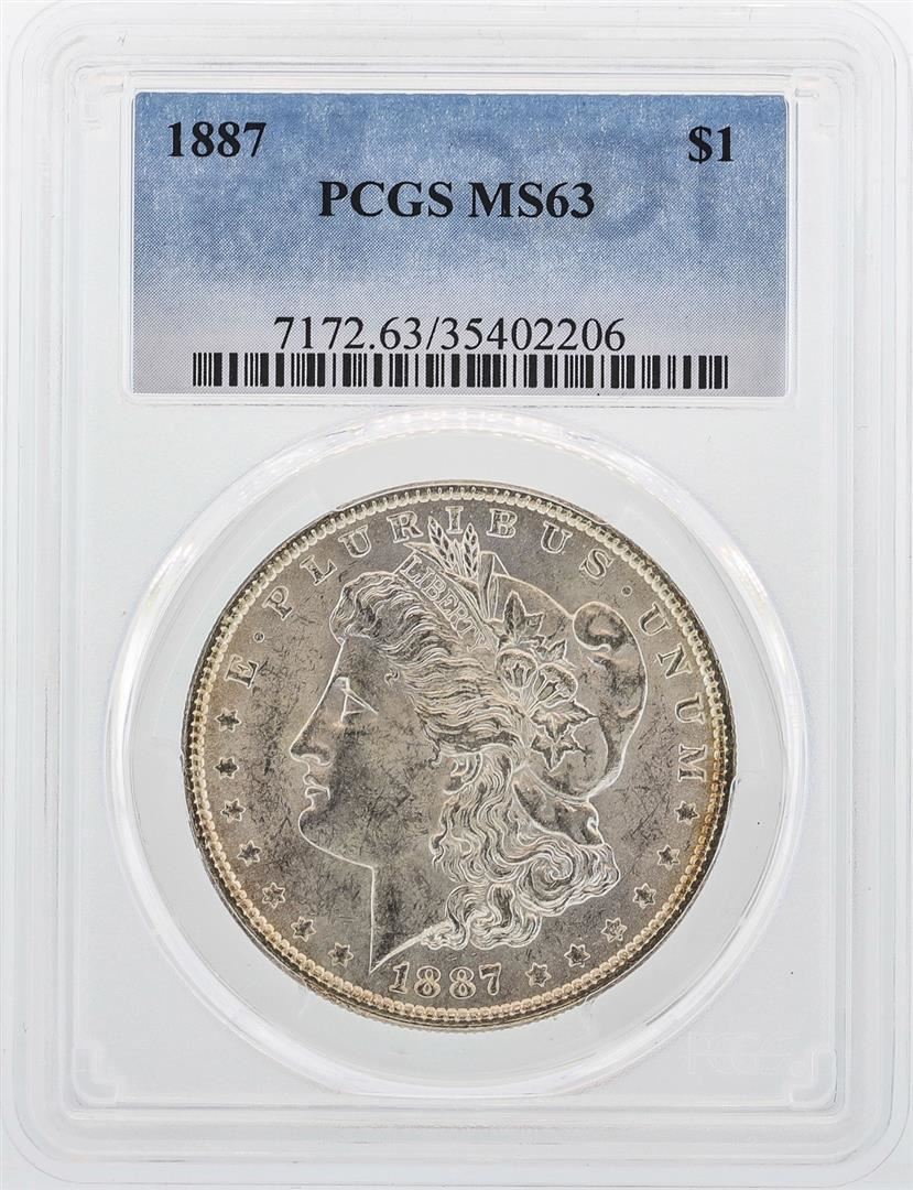 One 1887 $1 Morgan Silver Dollar Coin PCGS MS63. PCGS Graded.
