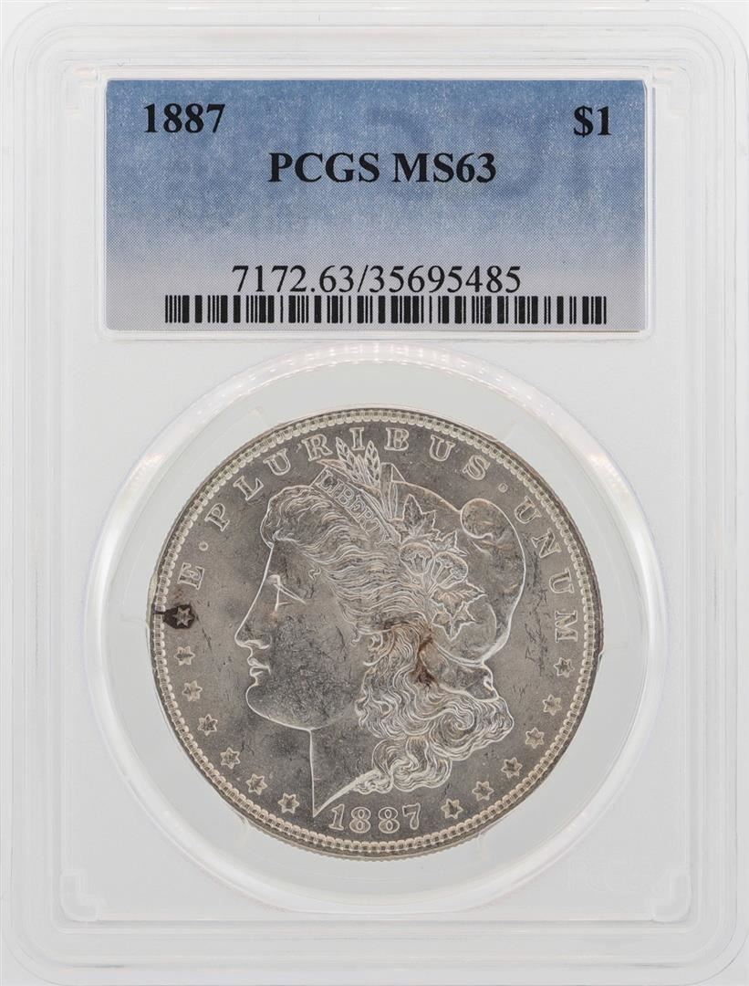 One 1887 $1 Morgan Silver Dollar Coin PCGS MS63. PCGS Graded.