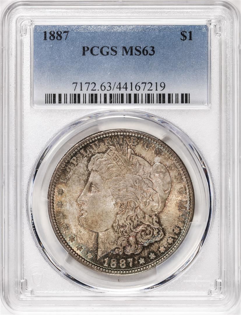 One 1887 $1 Morgan Silver Dollar Coin PCGS MS63. PCGS Graded.