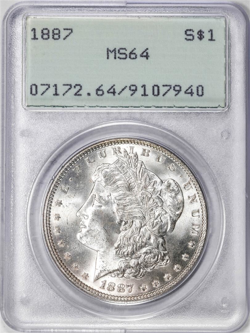 1887 $1 Morgan Silver Dollar Coin PCGS MS64 Green Rattler Holder