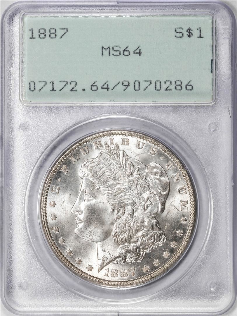 1887 $1 Morgan Silver Dollar Coin PCGS MS64 Green Rattler Holder