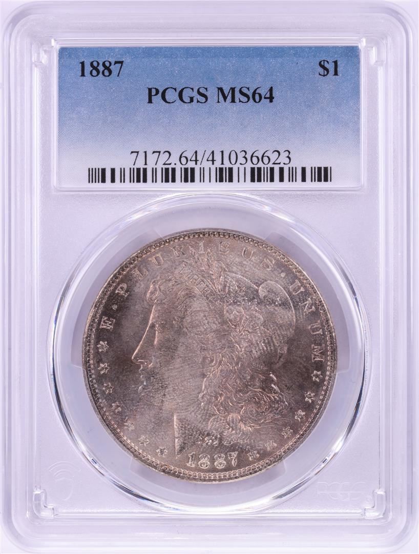One 1887 $1 Morgan Silver Dollar Coin PCGS MS64 Nice Toning. PCGS Graded.