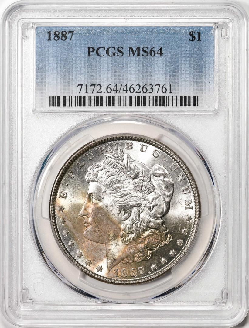 One 1887 $1 Morgan Silver Dollar Coin PCGS MS64 Nice Toning. PCGS Graded.