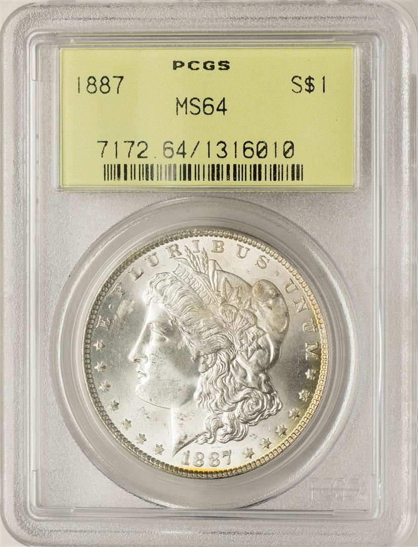 One 1887 $1 Morgan Silver Dollar Coin PCGS MS64 Old Green Holder. PCGS Graded.