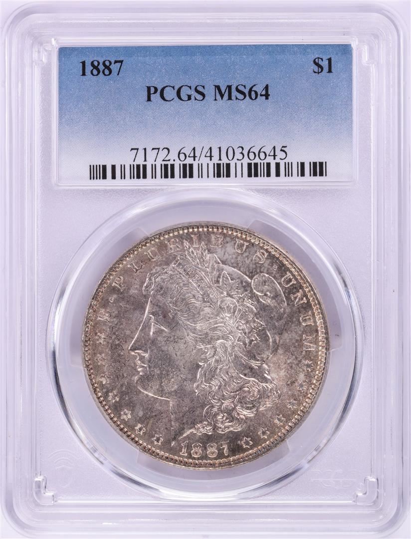 One 1887 $1 Morgan Silver Dollar Coin PCGS MS64. PCGS Graded.