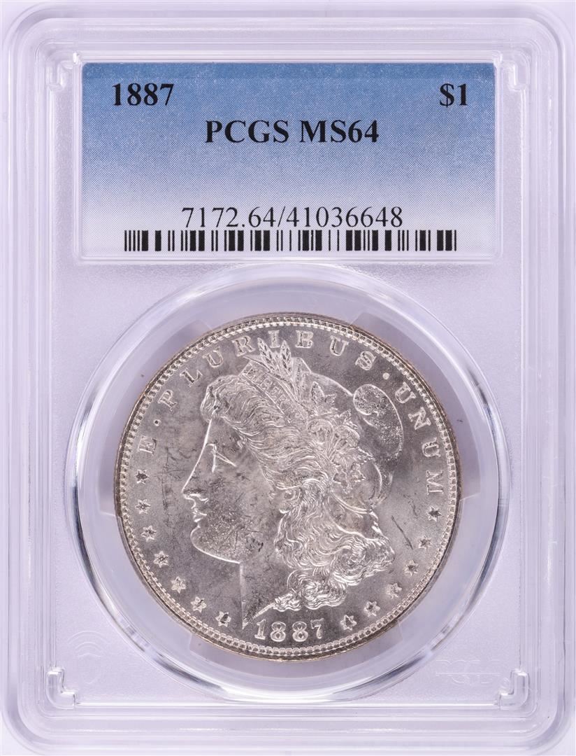 One 1887 $1 Morgan Silver Dollar Coin PCGS MS64. PCGS Graded.