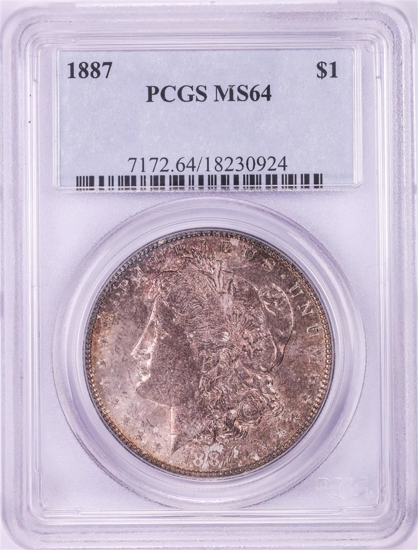 One 1887 $1 Morgan Silver Dollar Coin PCGS MS64. PCGS Graded.