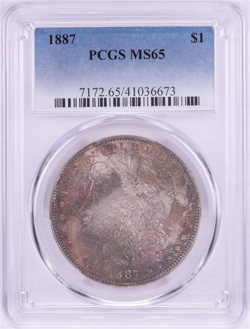 1887 $1 Morgan Silver Dollar Coin PCGS MS65 Amazing Toning