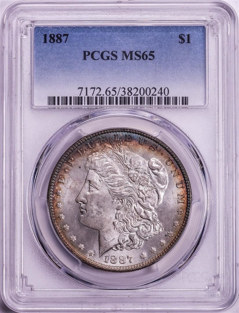1887 $1 Morgan Silver Dollar Coin PCGS MS65 Amazing Toning