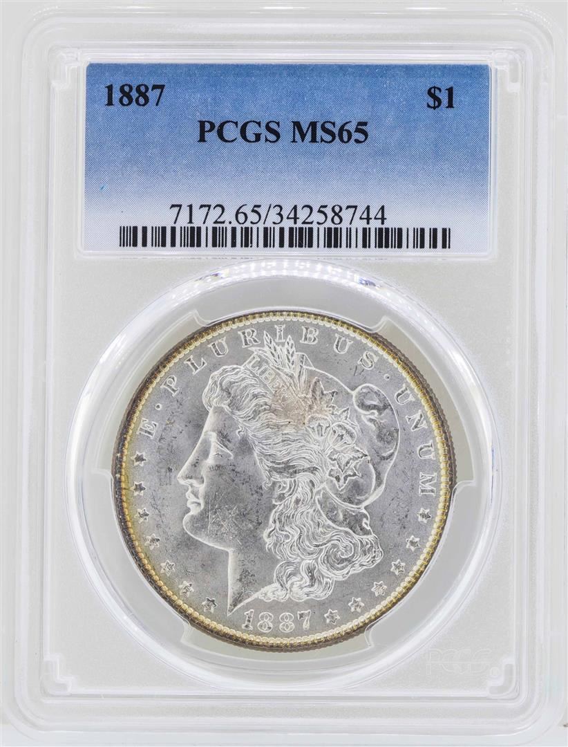 One 1887 $1 Morgan Silver Dollar Coin PCGS MS65 Great Toning. PCGS Graded.