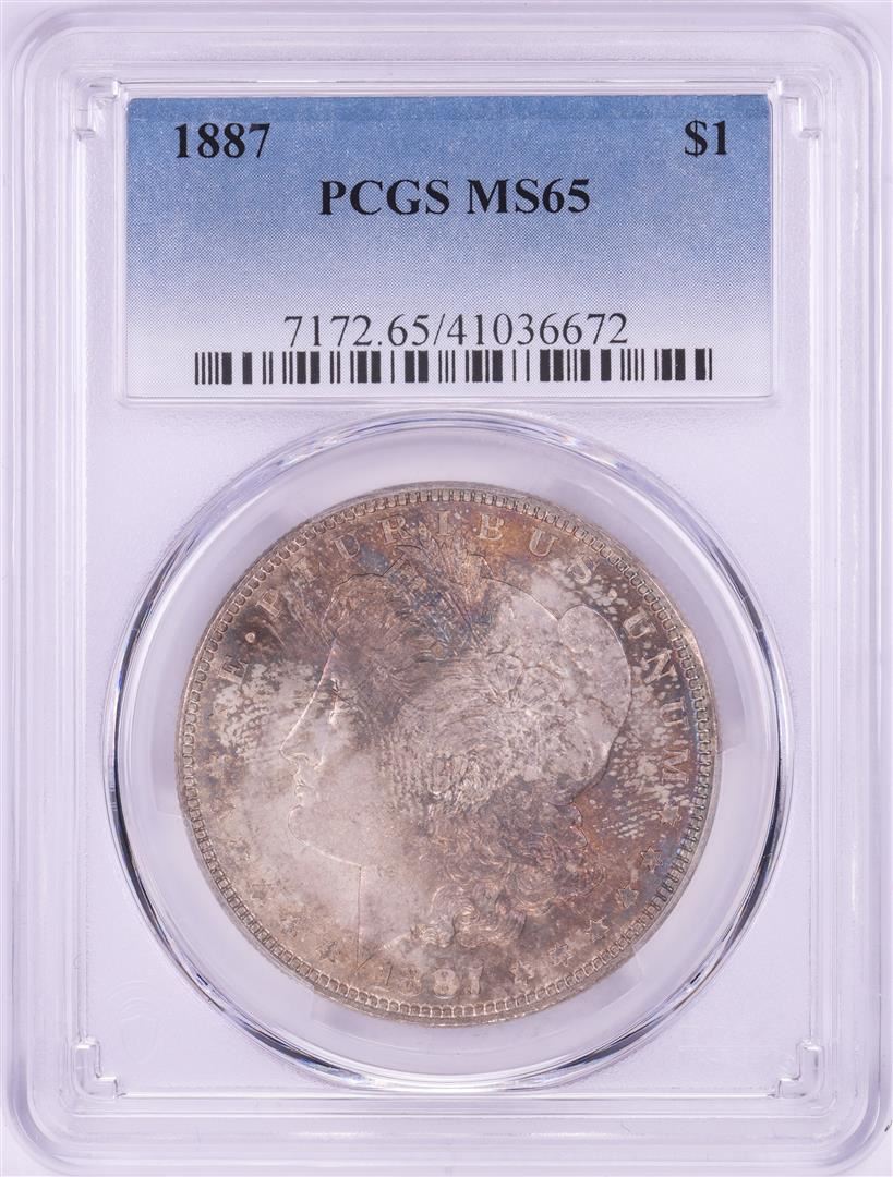 One 1887 $1 Morgan Silver Dollar Coin PCGS MS65 Nice Toning. PCGS Graded.