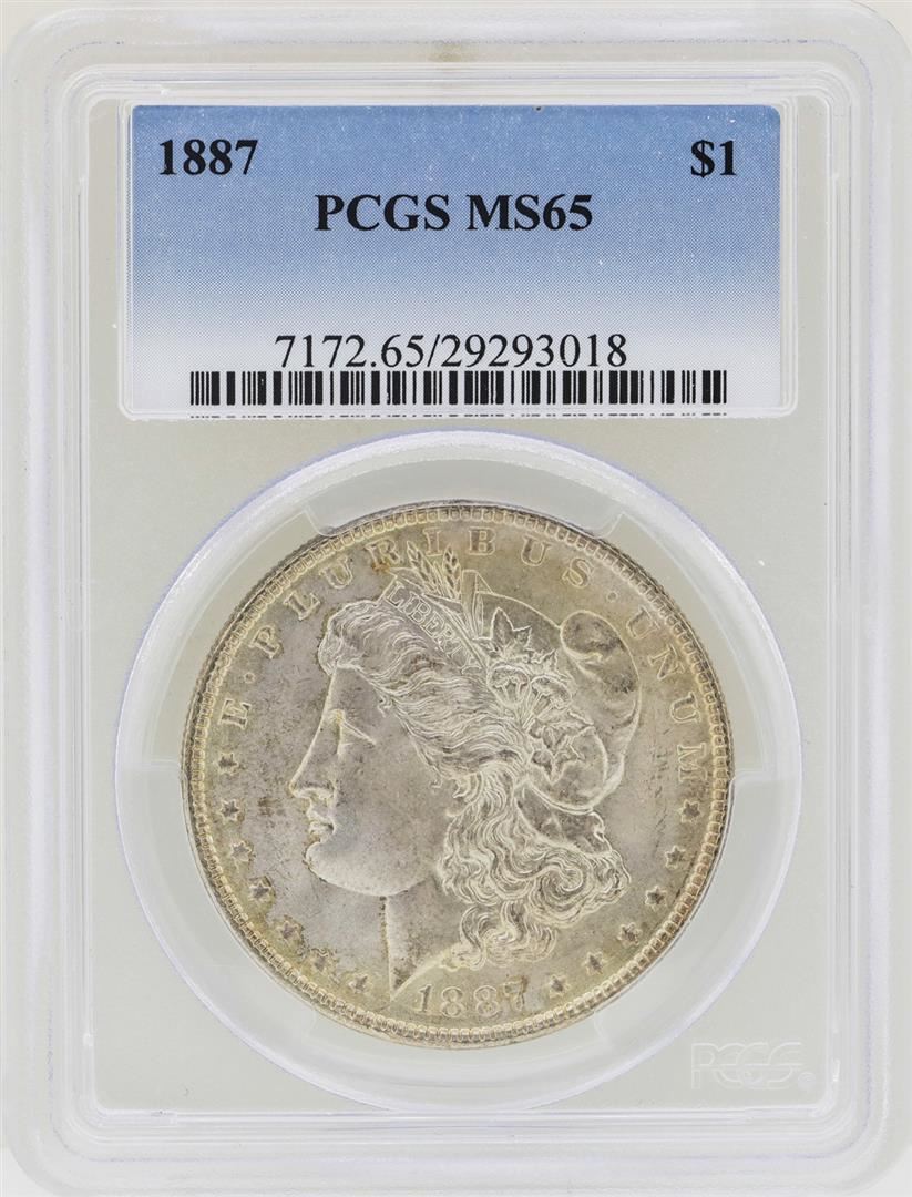One 1887 $1 Morgan Silver Dollar Coin PCGS MS65. PCGS Graded.