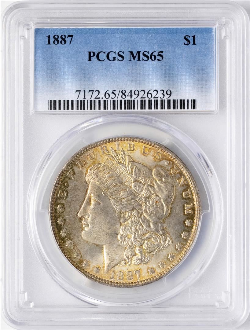 One 1887 $1 Morgan Silver Dollar Coin PCGS MS65. PCGS Graded.