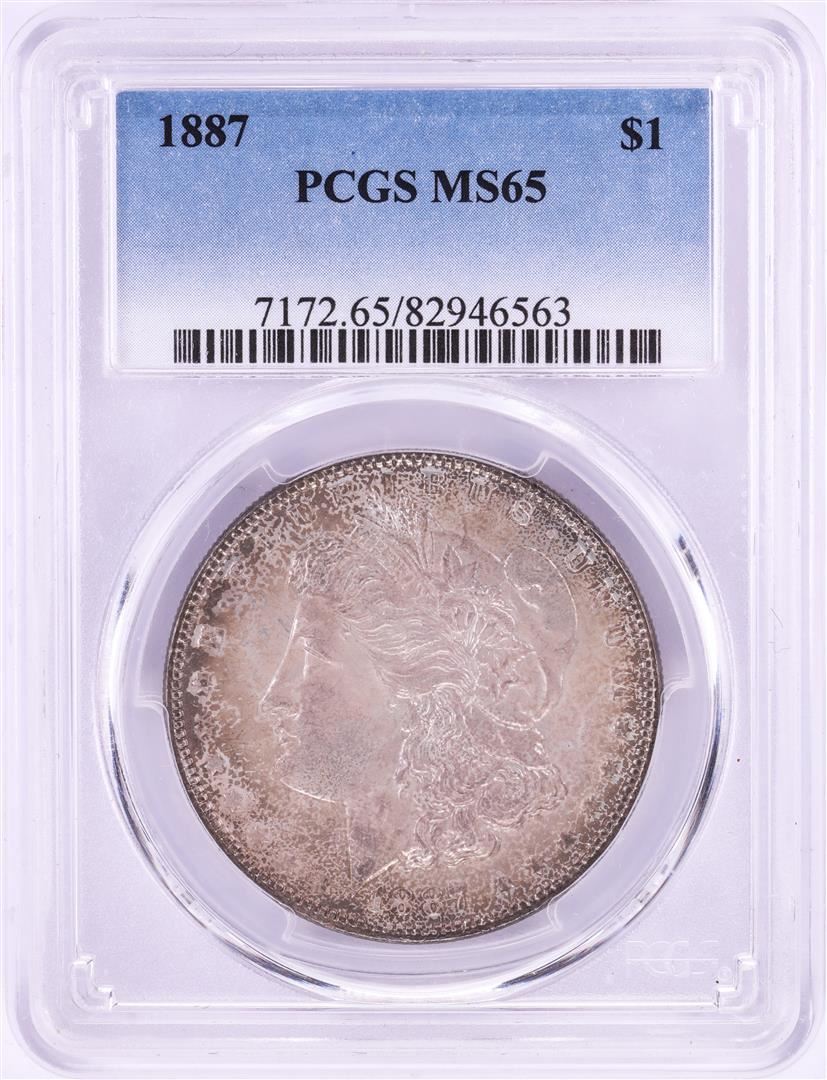One 1887 $1 Morgan Silver Dollar Coin PCGS MS65. PCGS Graded.