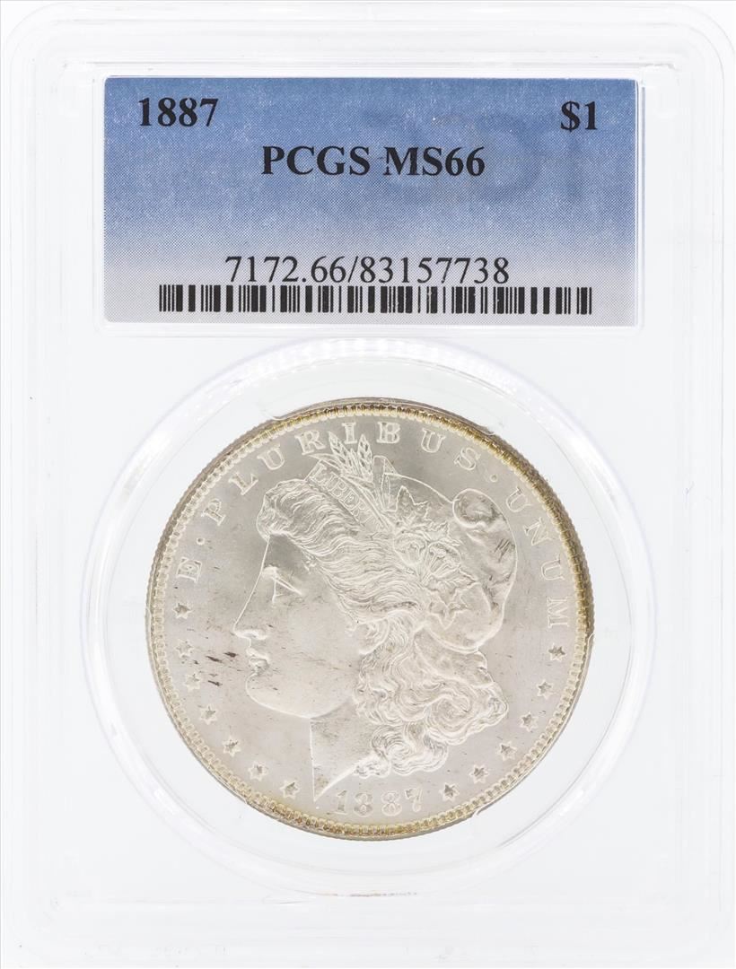 One 1887 $1 Morgan Silver Dollar Coin PCGS MS66. PCGS Graded.