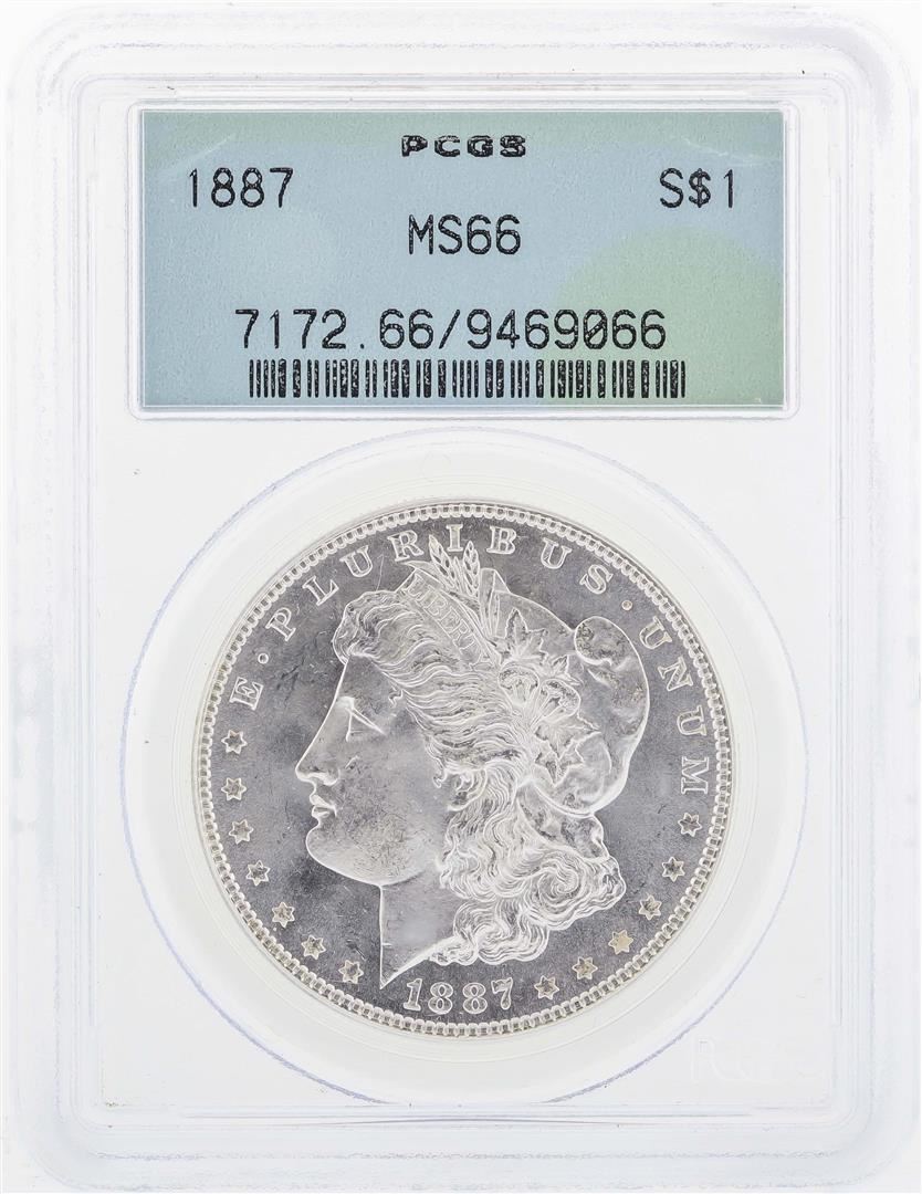 One 1887 $1 Morgan Silver Dollar Coin PCGS MS66. PCGS Graded.