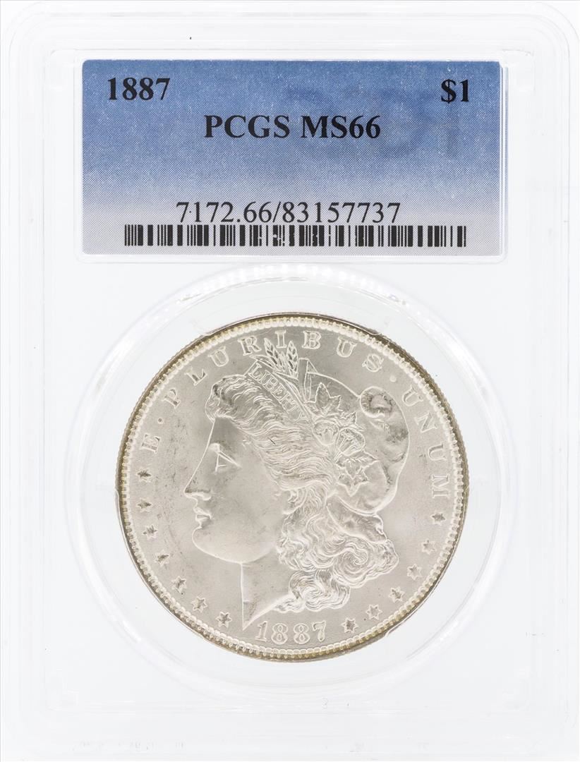 One 1887 $1 Morgan Silver Dollar Coin PCGS MS66. PCGS Graded.