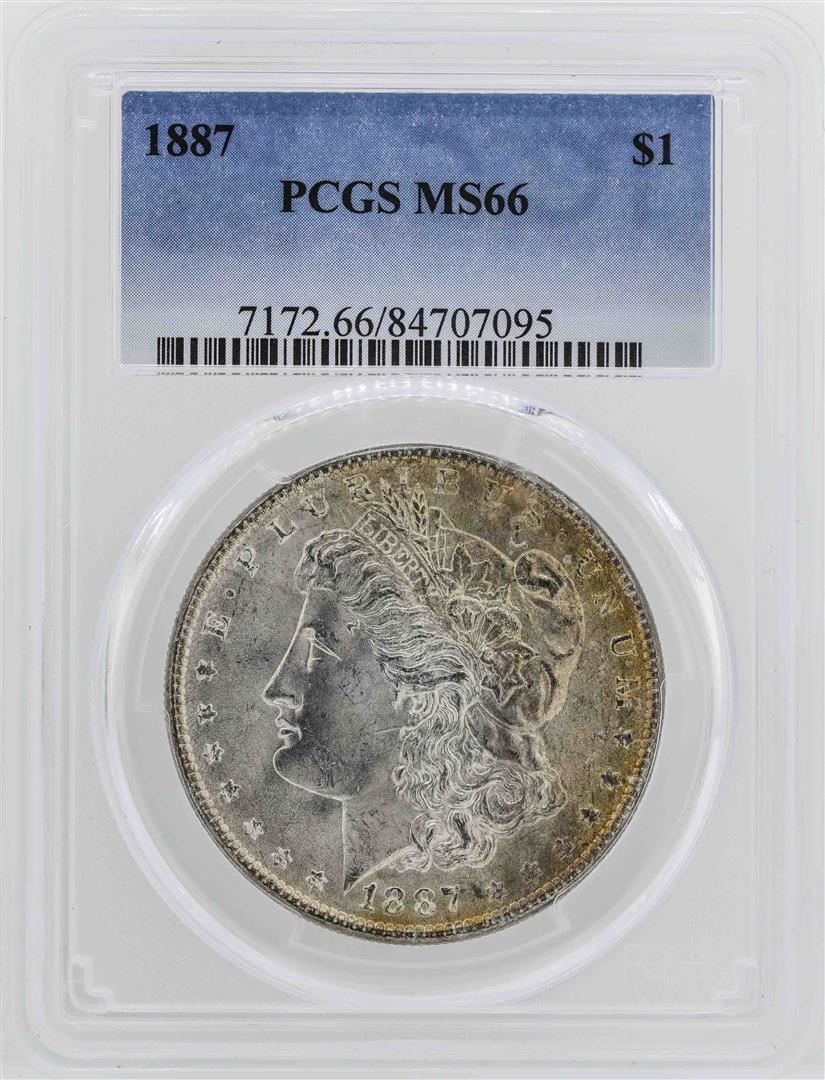 One 1887 $1 Morgan Silver Dollar Coin PCGS MS66. PCGS Graded.