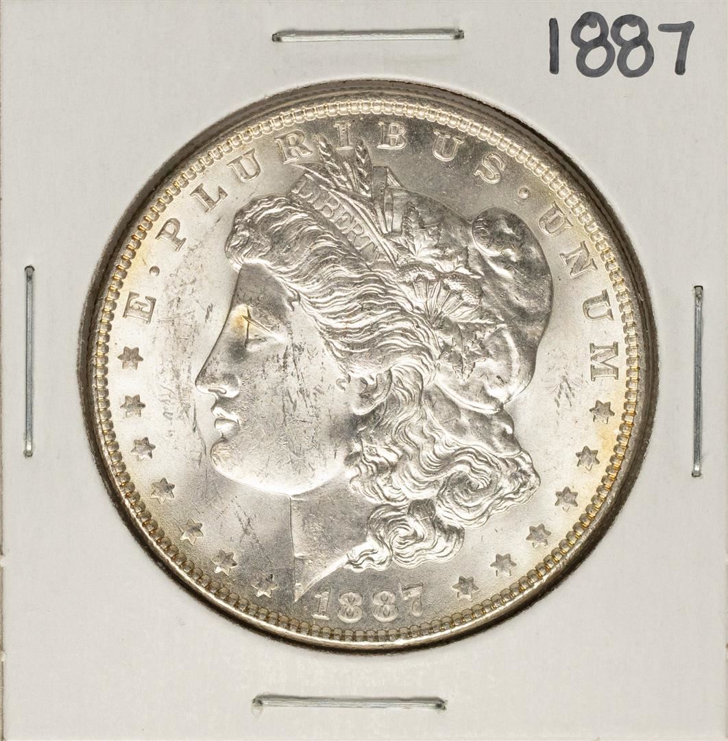 One 1887 $1 Morgan Silver Dollar Coin.