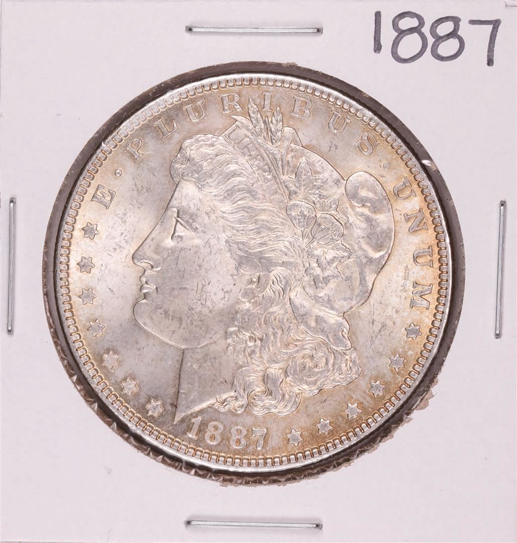 One 1887 $1 Morgan Silver Dollar Coin.