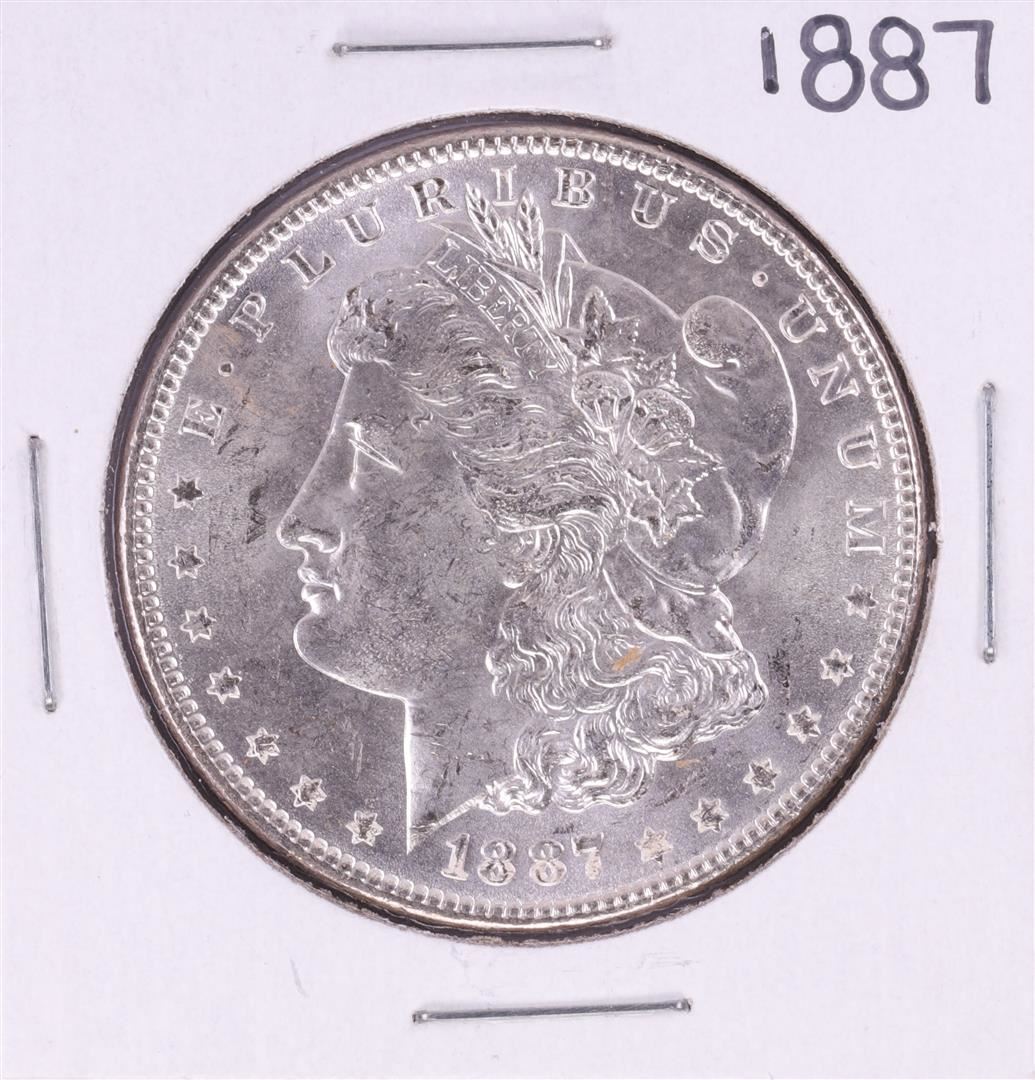One 1887 $1 Morgan Silver Dollar Coin.
