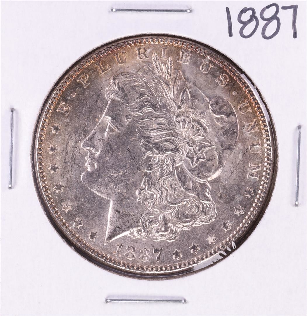 One 1887 $1 Morgan Silver Dollar Coin.