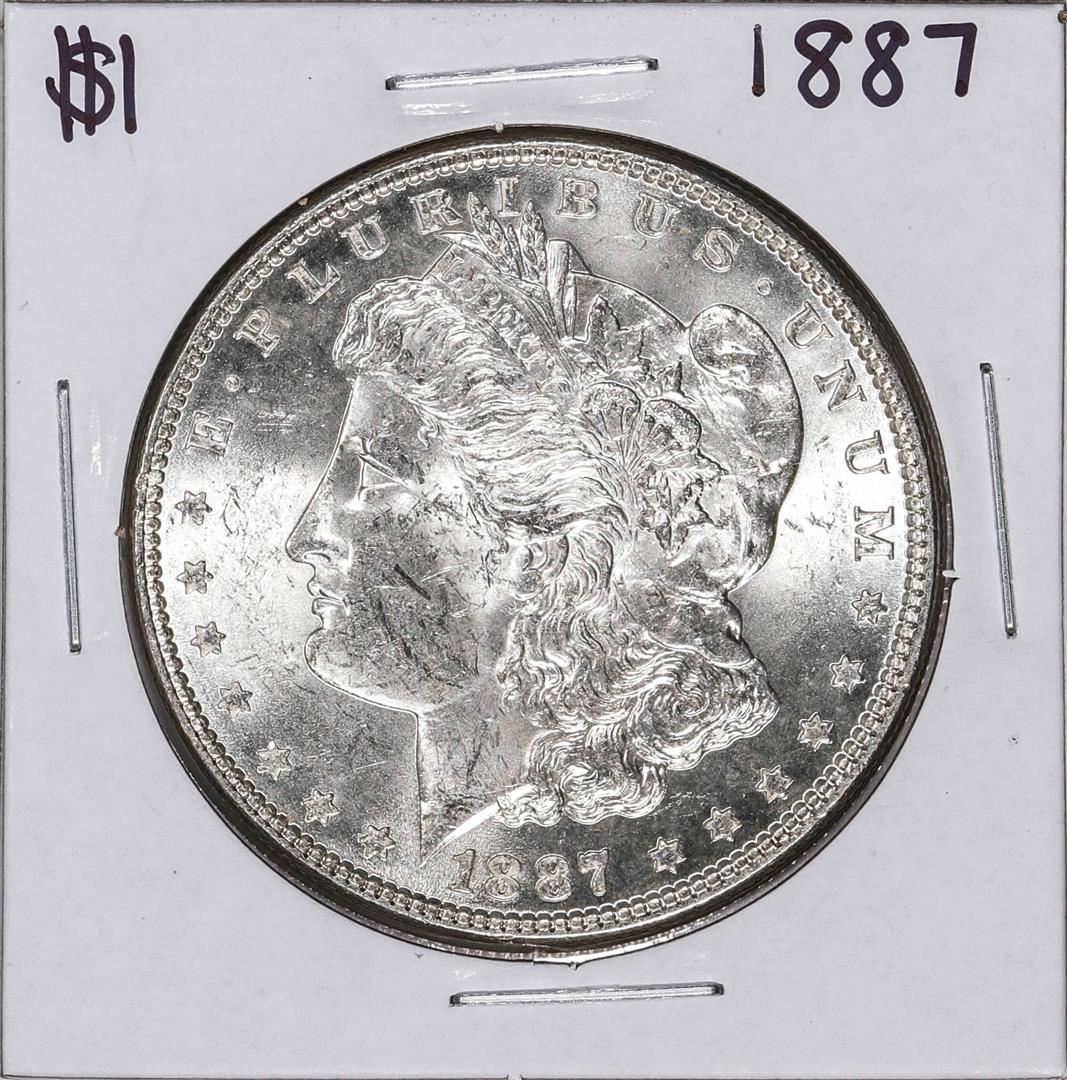 One 1887 $1 Morgan Silver Dollar Coin.