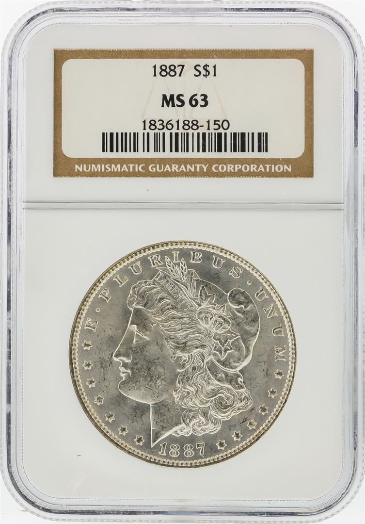 One 1887 $1 Morgan Silver Dollar NGC Graded MS63. NGC Certified.