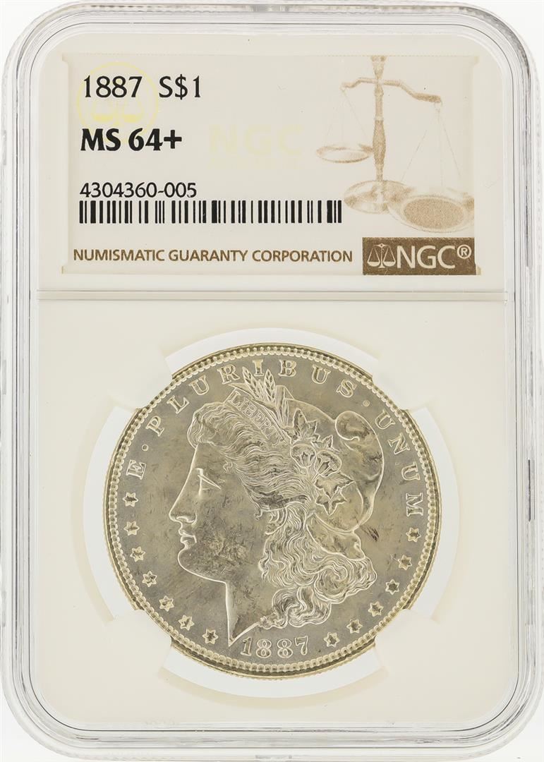 One 1887 $1 Morgan Silver Dollar NGC Graded MS64+. NGC Certified.