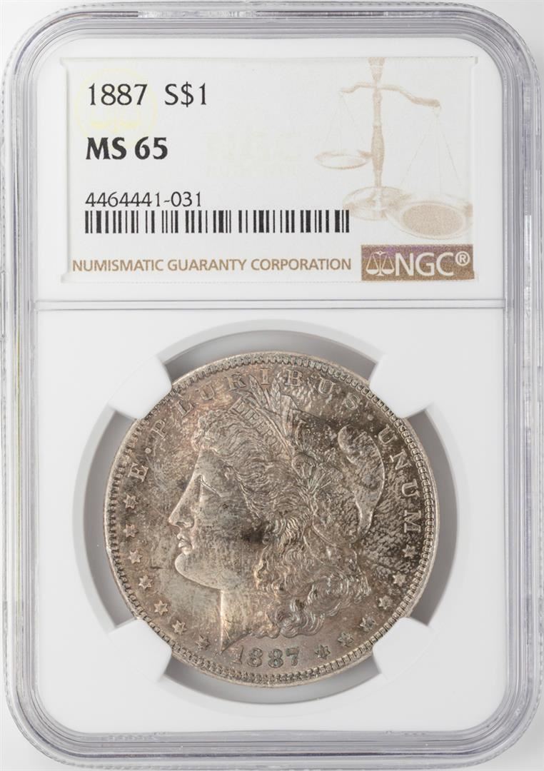 One 1887 $1 Morgan Silver Dollar NGC MS65 Nice Toning. NGC Certified.