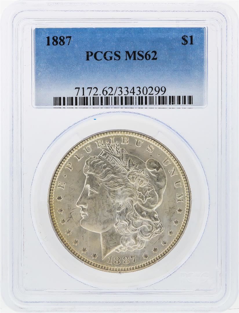 One 1887 $1 Morgan Silver Dollar PCGS Graded MS62. PCGS Graded.