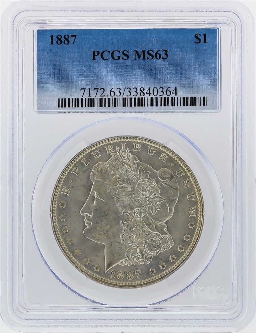 One 1887 $1 Morgan Silver Dollar PCGS Graded MS63. PCGS Graded.