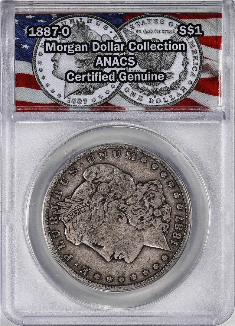 One 1887-O $1 Morgan Silver Dollar Coin ANACS Genuine. ANACS Certified.