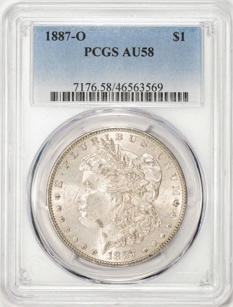 One 1887-O $1 Morgan Silver Dollar Coin PCGS AU58. PCGS Graded.