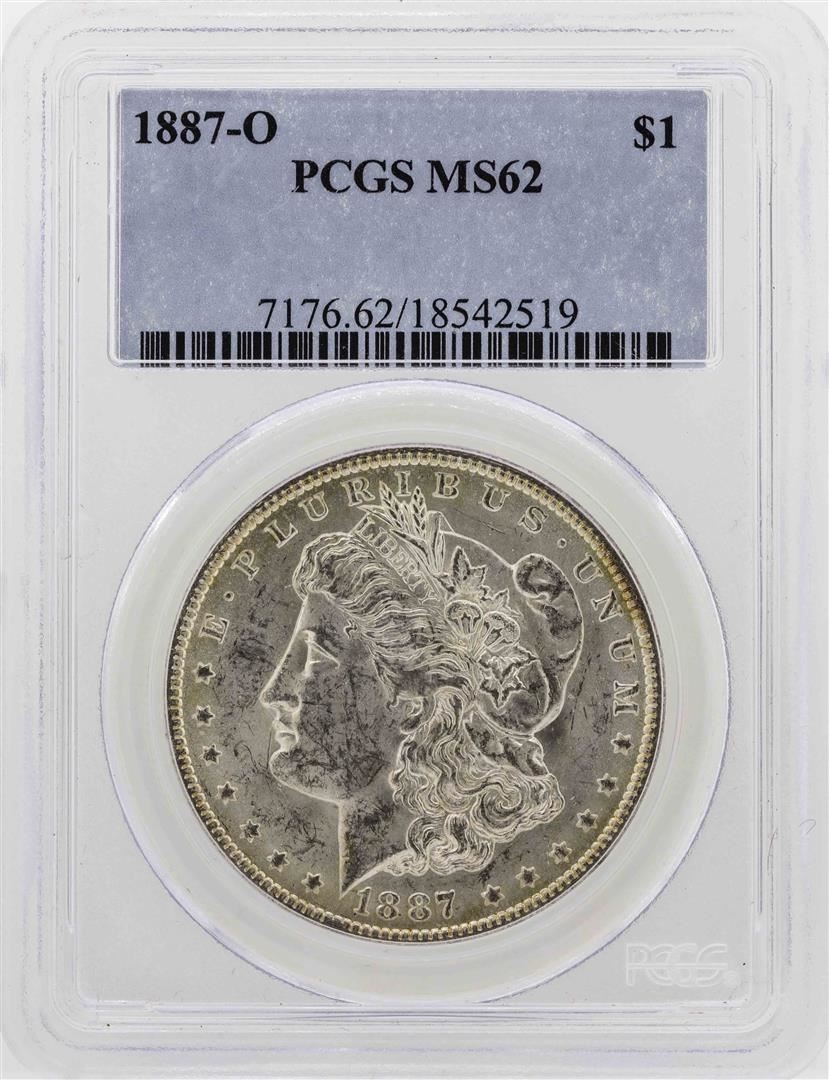 One 1887-O $1 Morgan Silver Dollar Coin PCGS MS62. PCGS Graded.