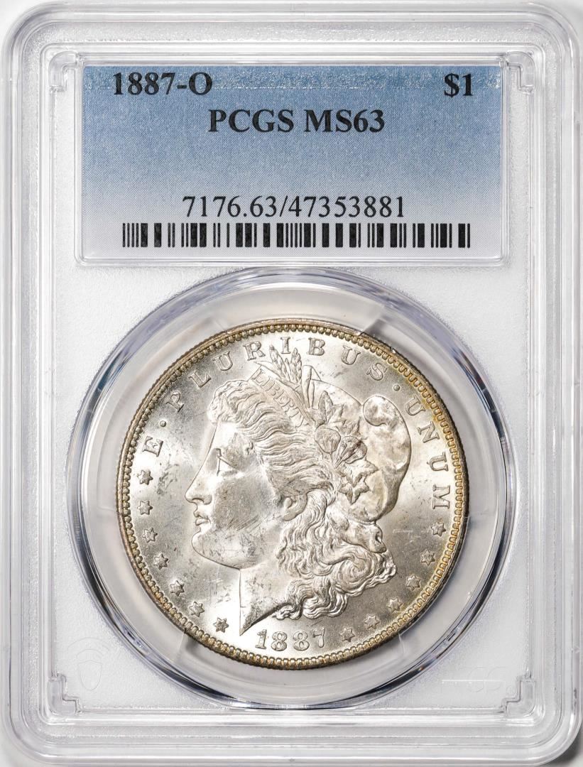 One 1887-O $1 Morgan Silver Dollar Coin PCGS MS63. PCGS Graded.