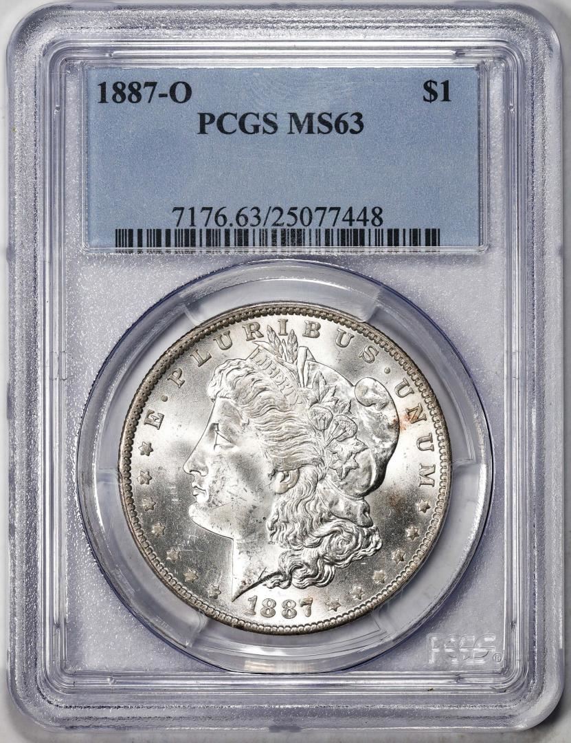 One 1887-O $1 Morgan Silver Dollar Coin PCGS MS63. PCGS Graded.