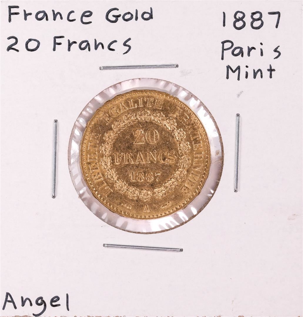 One 1887 Paris Mint France 20 Francs Gold Coin.