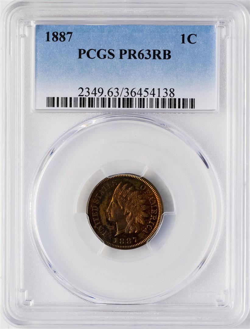 One 1887 Proof Indian Head Cent Coin PCGS PR63RB. PCGS Graded.