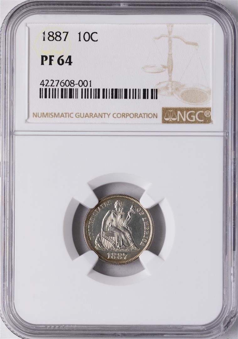 One 1887 Proof Seated Liberty Dime Coin NGC PF64. NGC Certified.