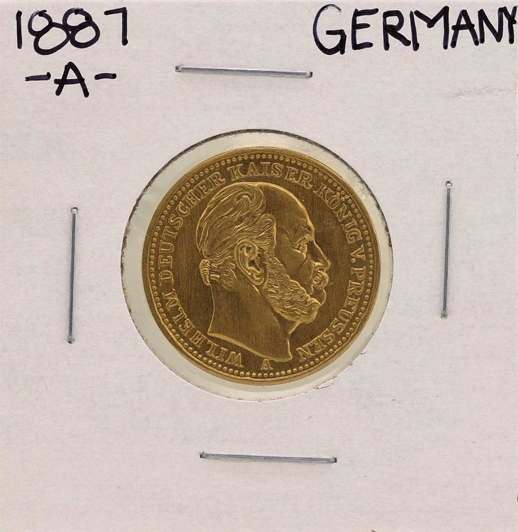 One 1887 Prussia Germany 20 Marks Gold Coin.