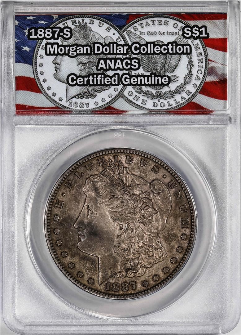One 1887-S $1 Morgan Silver Dollar Coin ANACS Genuine. ANACS Certified.